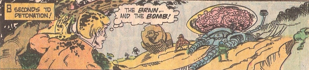 One more thing to note about this issue is the influence of the Ancient Astronaut craze that hit in 1968 when Erich von Daniken's Chariots of the Gods was published. This idea had a significant influence on Marvel comics mythology and here it pops up in E-Man as well. One of the fun things about reading the E-Man series is to see what was on peoples' minds in the 1970s.
