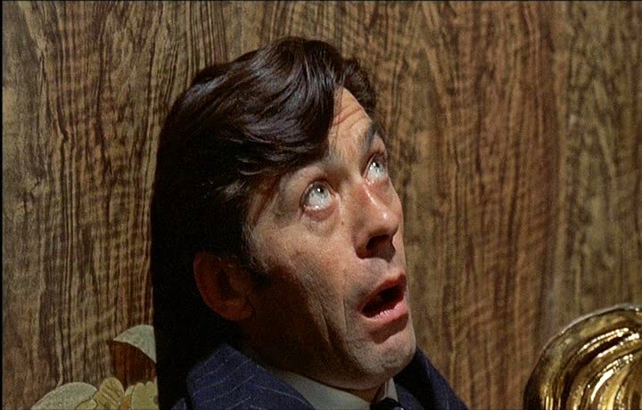 John: Jose nailed it. I think one of the reasons I loved the film growing up was that Phibes was a sympathetic character. How could one blame him for wanting revenge after losing his lovely young wife (more on the enchanting-even-as-a-corpse Caroline Munro later)? And despite being packed wall-to-wall with murders, the humorous bits with the bumbling inspectors of Scotland Yard (save our relentless Trout, who never falters) make those sequences out to be more camp than anything else. Which contributes to the final climax being so effective—by the time we get to Vesalius's struggle to save his son, it's clear this is no longer a joke.