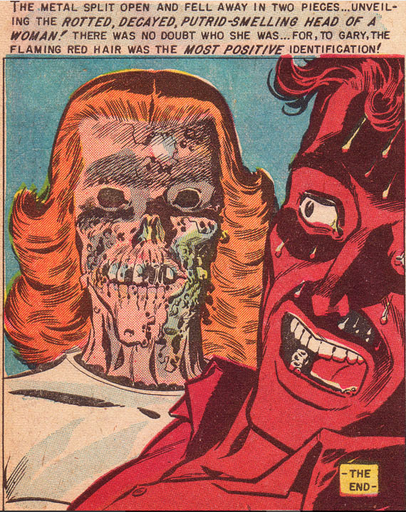 Why open an issue with a Jack Kamen story? Just when we think they've worked out what he's best at--humorous tales with pretty girls--they assign him a domestic drama with a gruesome ending. Well, it might be gruesome in other hands, but in Kamen's it's rather tepid.