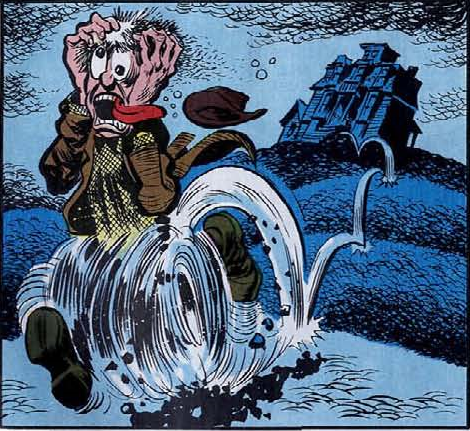 A gun-toting posse is congregating outside the dark mouth of a forested cave when the good Doc Chambers intervenes and tells them that their bullets will be wasted on the weird, inhuman creature that they are hunting. Hopping aboard the Flashback Trolley whilst around an atmospheric campfire, Doc explains that the monster’s birth had its origins in a clinical visit over a year ago from Pete Feeley. Feeley had sought Chambers out after developing cancerous growths on his arm and, after being told that the tumors were malignant, a mortally-frightened Feeley had consulted the dark powers of the resident black magic hag on Bald Mountain. The witch performs a ritual ensuring that Feeley will never die, and she’s all too triumphant: though Pete shows no signs of dying any time soon, the tumors start to spread and overtake his entire body. In a short amount of time Pete ends up secluding himself in his cabin as he transforms into a cancerous blob with a hankering for healthy cells. Just then, the posse sees the Pete-blob attack one of their number as it oozes from the cave. They manage to prod it back into the cave with torches and blow the entrance with dynamite, thus effectively sealing in the beast for hopefully all eternity.