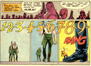 Shock that’s probably more memorable and controversial for its stunning representation on the front cover rather than for the actual story behind it. Feldstein's script comes off very much like a full-length motion picture with a decidedly bleak ending condensed into seven pages of comic book art, and the action-oriented narrative and removed perspective we have of the story’s proceedings (as opposed to, say, seeing the events play out through the eyes of one of the vigilantes in a fashion more in line with