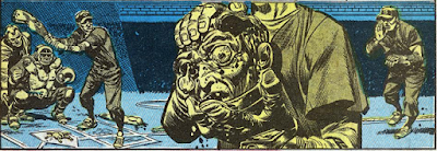 I've been waiting for a great Johnny Craig story for a while now, and I think "Split Personality!" is it! The art is perfect, blending crime, humor, and horror seamlessly, and the story is a lot of fun, all the way to the side-splitting finish. And how about that cover? If I were in Congress, I'd hold it up as Exhibit A. The bone sticking out is the worst part.