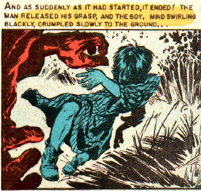 I'll admit that I guessed the ending a page early, but this is still a powerful story, one in a series of social commentary tales that stand as some of EC's most sober, adult fare. Wood's art is, as usual, fabulous, and he can't stop himself from making Amy a pinup gal. The title has a double meaning: the whipping is not only the physical attack on the girl but also the whipping up of the neighbors into a frenzy.