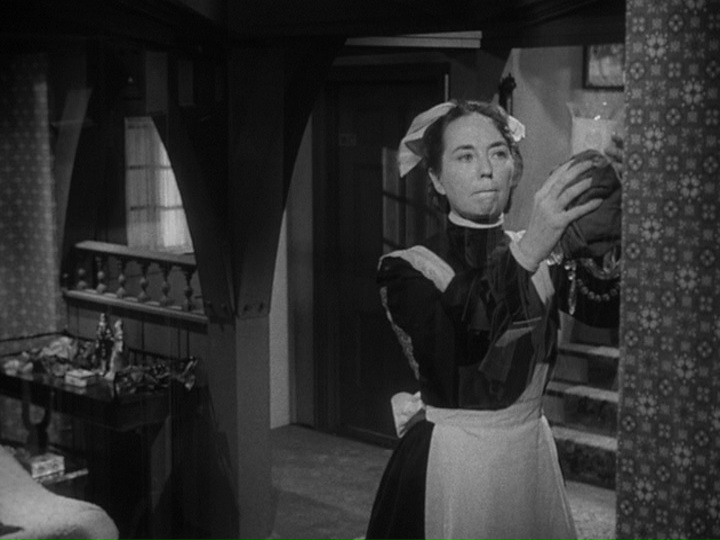 *Molly Glessing (1891-1971) as the maid; she often played maids in a career onscreen from 1951 to 1964 and she was seen in seven episodes of the Hitchcock show, including "The Orderly World of Mr. Appleby."