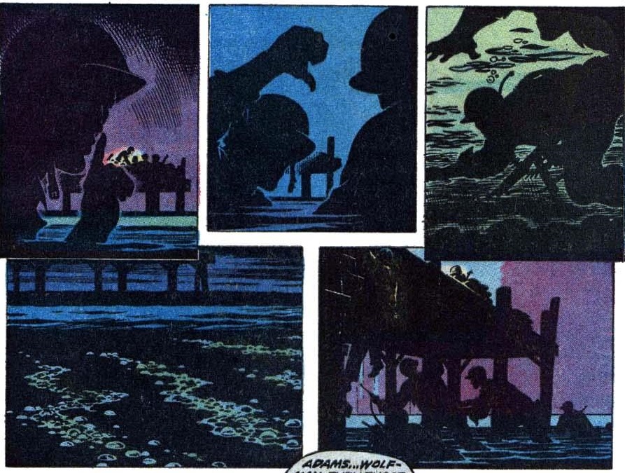 The picture then dissolves into an extended flashback sequence that is much longer than the brief sequence in the story. We see Blake and Miss Dent working late together at the office. He invites her to dinner and we see them walking along the sidewalk on the same set used for the climactic scene of