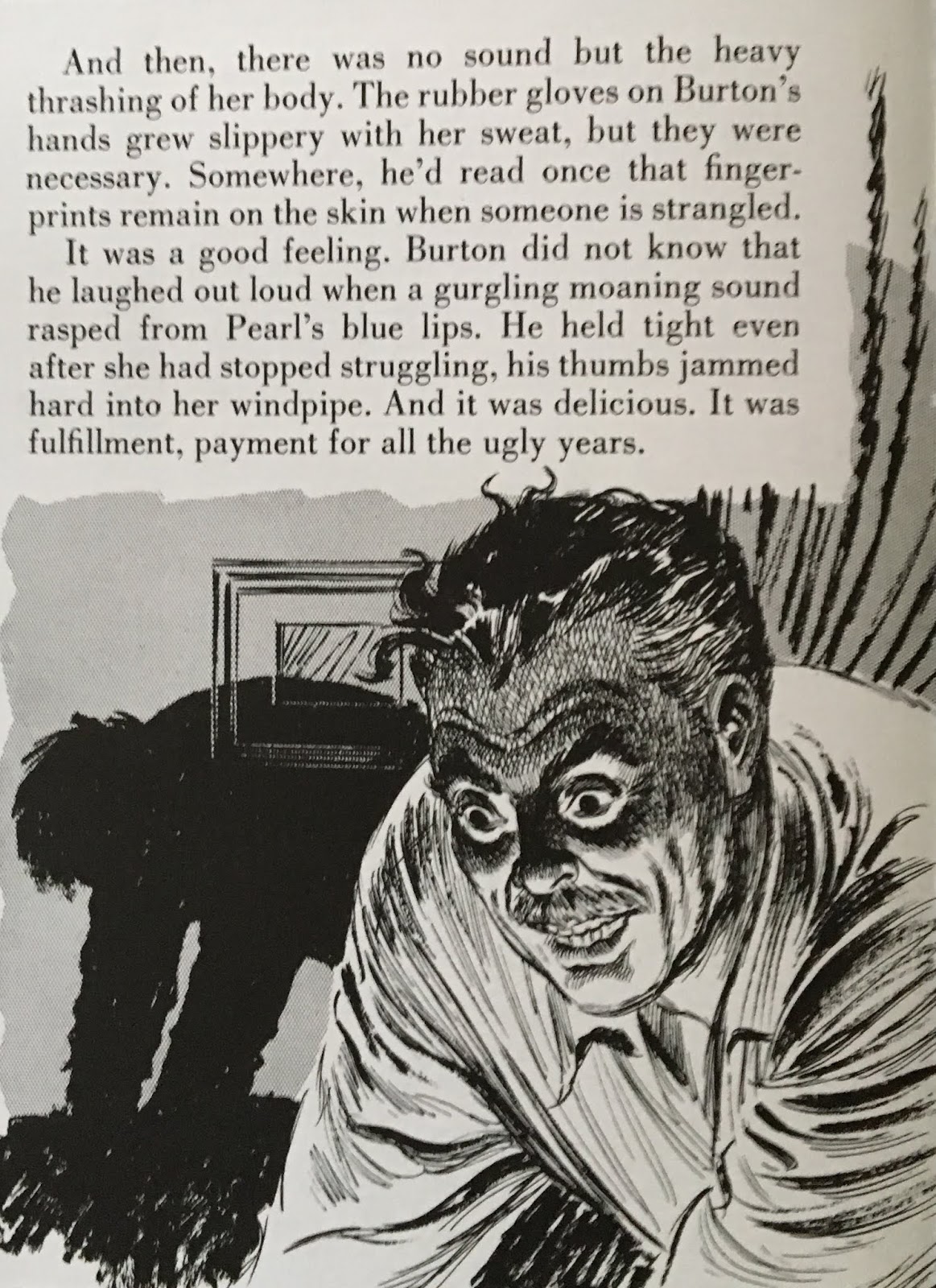 Peter: I liked “Repeat Performance” and “Wanted for Murder” in both script and art department. It’s nice to get a few last glimpses at the work of Wally and Al and there are some comedic moments in “Repeat” that really shine (“George, she . . . she’s simply fascinating,” Margaret told George’s newspaper one day.). Like the best of the crime Pictos, these two stories call to mind Gold Medal crime novels. I was not so fond of “Booby Trap,” which has a climax very reminiscent of “Repeat Performance” and some lazy graphics by Charles Sultan. Roger Hill, in his detailed notes for Crime Illustrated in the Cochran box, remembers that EC fans were not at all happy with Sultan’s work, and it’s easy to see why. Sultan's style is a little too much like Joe Orlando’s and Sultan peppers his stuff with the same kind of swipes as Orlando (here he borrows Liz Taylor for some angles of Joyce). I will say that it’s fascinating that Oleck and Feldstein took advantage of the prose delivery and were able to conceal the similar switcheroos in “Booby” and “Repeat” right up to the last “panel.”