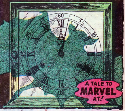 Photographer Philbert Hooten has made a boatload of dough selling his offbeat pictures of graveyards but he desires to branch out into another field of photojournalism: the future. To that end, Philbert creates a camera (by "studying calendars for hours at a time!") and snaps a pic of the world one week hence. Things go pear-shaped when the snap is developed and shows the future as a blank. Joe Sinnott is fast ascending to the ranks of Heath, Colan, and Maneely as Atlas artists who make stories that much better just with their presence. The package ends on a downer with "Detour!," yet another variation on the "traveler who meets up with the personification of death and then takes its place at the climax" story. Yawn.