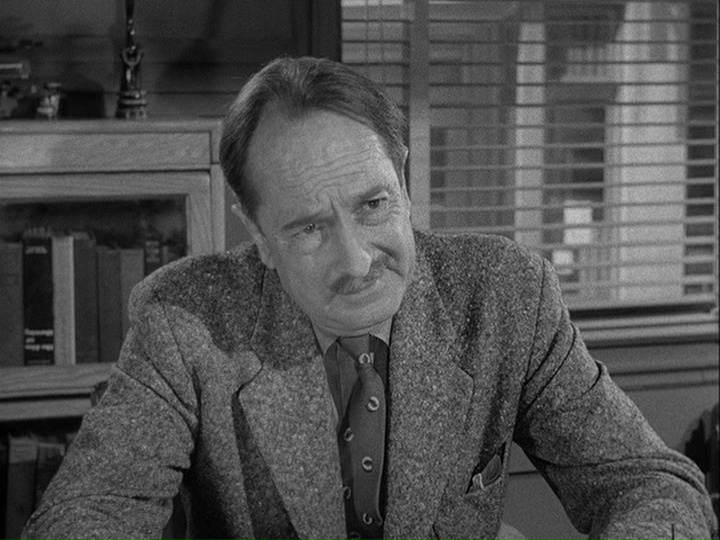 "Listen, Listen . . . . . !" (the five periods are added for the TV show's title) would not work nearly as well were it not for the terrific performance by Edgar Stehli (1884-1973) as Herbert Johnson. He is meek and fearful and his terror grows as the show goes on and one person after another dismisses him without listening, until he finally has to return home to the wife who murdered his little girl. Born in France, Stehli was a fixture on Broadway from 1916 to 1966. He acted on radio in the thirties and forties and was seen on screen from 1947 to 1970. He was in the original Broadway cast of