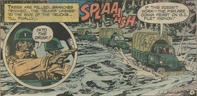 Jack: The Haunted Tank story features plenty of unexpected carnage but Sam Glanzman remains curiously incapable of creating excitement with his sequential illustrations. Also, I didn't understand why the crew of the Haunted Tank had to put on kilts at the end of the story. I liked "The Redball Express" and thought it was a nicely-done story of black soldiers showing heroism that was unexpected by their white compadres. I'm a sucker for some 1970s' race-relations comic stories.